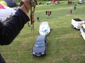 Heliums zur genaueren Windbestimmung gelang es dem Piloten einen Startplatz zu finden, der ein
