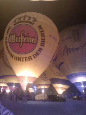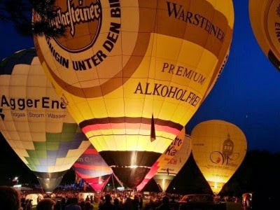 Nachdem die diesjährige WIM leider der Legionellenseuche in Warstein zum Opfer gefallen ist, hat am 16.11. ein Special Nightglow in Warstein stattgefunden. Es waren 28 Ballonteams anwesend, unter anderem auch wir mit unserem Warsteiner Ballon. Es hat Spaß gemacht, alte Freunde wiederzusehen. Es war saukalt aber trotzdem superschön. Warstein ist für uns Ballonfahrer immer eine Reise wert. |