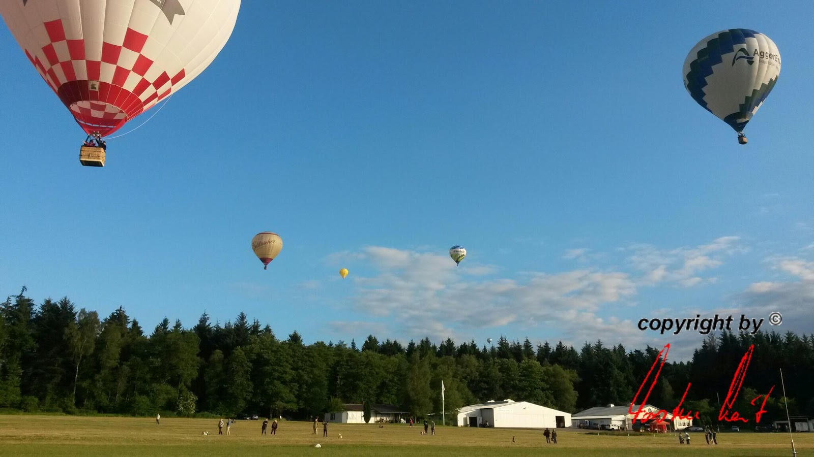 Wie bereits 2013 fand auch dieses Jahr wieder unter der Organisation der Ballonsportgruppe A.Li.Be.Bi. e.V. das Heißluftballon- und Drachenfestival statt. Zu dieser familiären Ballonsportveranstaltung wurden unter anderem auch der BSC Nümbrecht eingeladen. Dieser Einladung folgte unser Nachwuchspilot Martin Henn mit seinem Team gerne und präsentierte dort unseren Sponsorenballon AggerEnergie. Nachdem die Wetterprognosen sowohl für den Freitagabend als auch für den Samstagmorgen keine Starts zuließen, kam für Samstagabend endlich das „Go“. Bei perfekten Bedingungen konnten alle Ballone aufsteigen. Während sich einige Piloten für die tieferen Schichten Richtung Frankreich entschieden, wählten andere Piloten die hohen Lufträume, um genau in die entgegengesetzte Richtung zu fahren und sich anschließend in den tieferen Schichten wieder zurück in die Nähe des Startplatzes treiben zu lassen. So konnte den begeisterten Zuschauern nicht nur beim anschließenden Nightglow und den immer wieder gerne gesehenen Sonderformen gezeigt werden, was das Ballonfahren so einzigartig macht. |