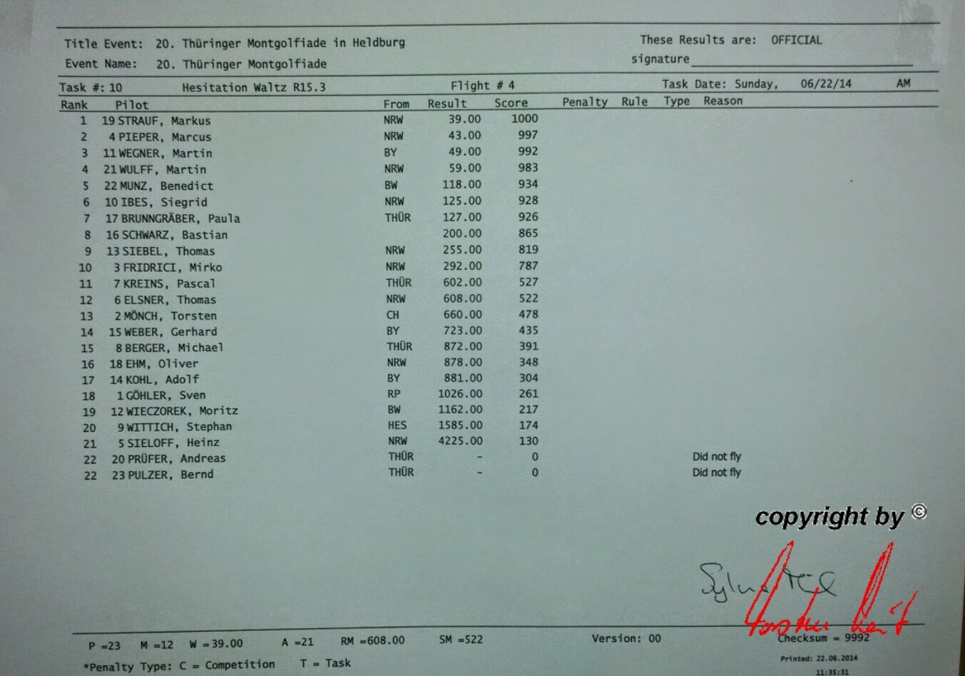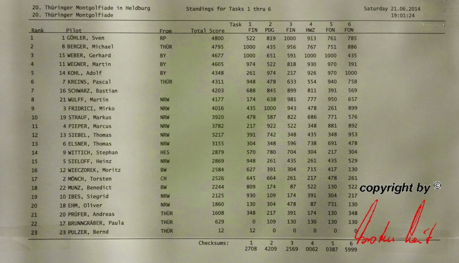 Samstag, 21. Juni 2014 / 2. Fahrt erledigt Die fünf Aufgaben sind gefahren und wir haben kein schlechtes Gefühl. Eine schöne Fahrt war es allemal. Heute Nachmittag wissen wir mehr. |