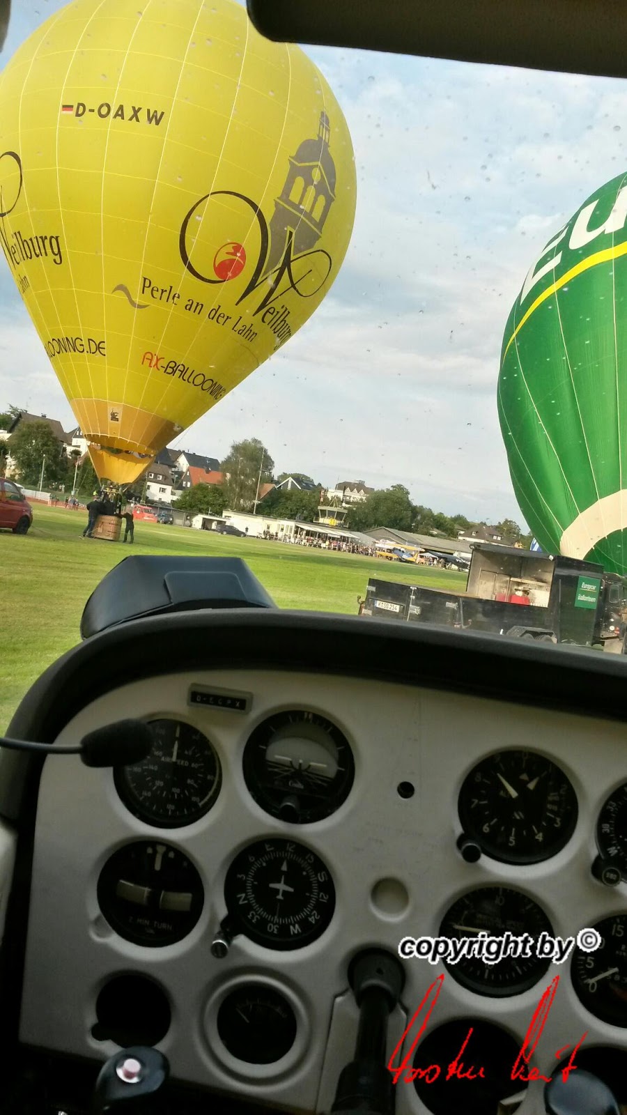 Neben den vielen Attraktionen, die der Luftsport bietet und dem Publikum bereits den ganzen Tag über geboten wurden, fand gegen Abend natürlich auch noch eine Ballonfahrt statt. Der BSCN war mit allen drei Ballonen dabei. Nach der Fahrt ging es schnell wieder zurück zum Flugplatz, um dort die Ballone erneut für ein Nightglow aufzustellen. |