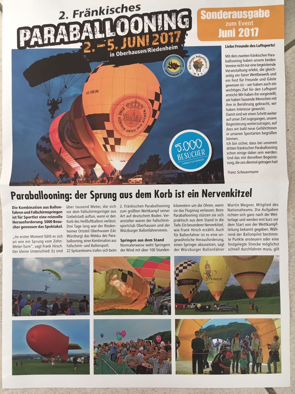 Kurzentschlossene Teilnahme an einem toll organisierten Wettbewerb der Würzburger Ballonfreunde e.V. und des Fallschirmsportspringerclub Oberhausen e.V. |