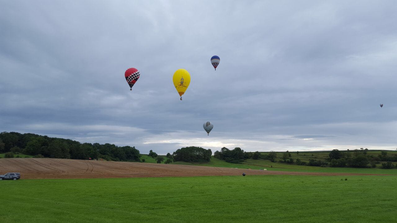 Auch auf der thüringischen Montgolfiade in Bad Colberg-Heldburg war das Wetter nicht wirklich gut zum Ballonfahren geeignet, deswegen nur zwei Fahrten wovon eine sofort nach dem Start gecancelt wurde. |
