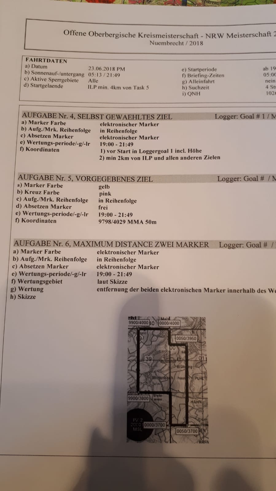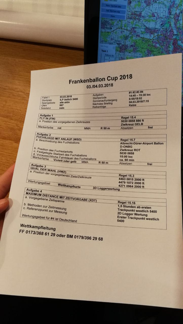 Nachdem der geplante Start vom Airport Nürnberg nicht möglich war, wurde die Wettbewerbsfahrt in den Bereich Forchheim verlegt. An dieser Stelle ein großes Lob für die tolle Aufgabenstellung mit fahrbaren Wetterbedingungen. Leider ließen aber eben auch die Wetterbedingungen keinen zweiten Start am Sonntag zu. |