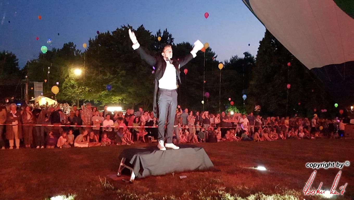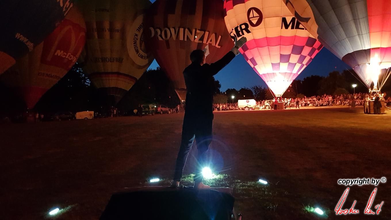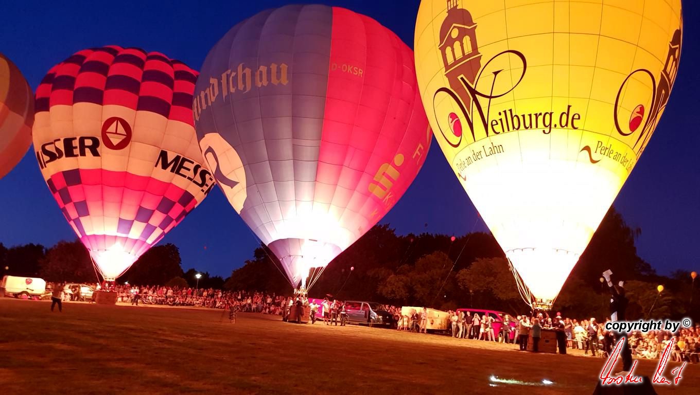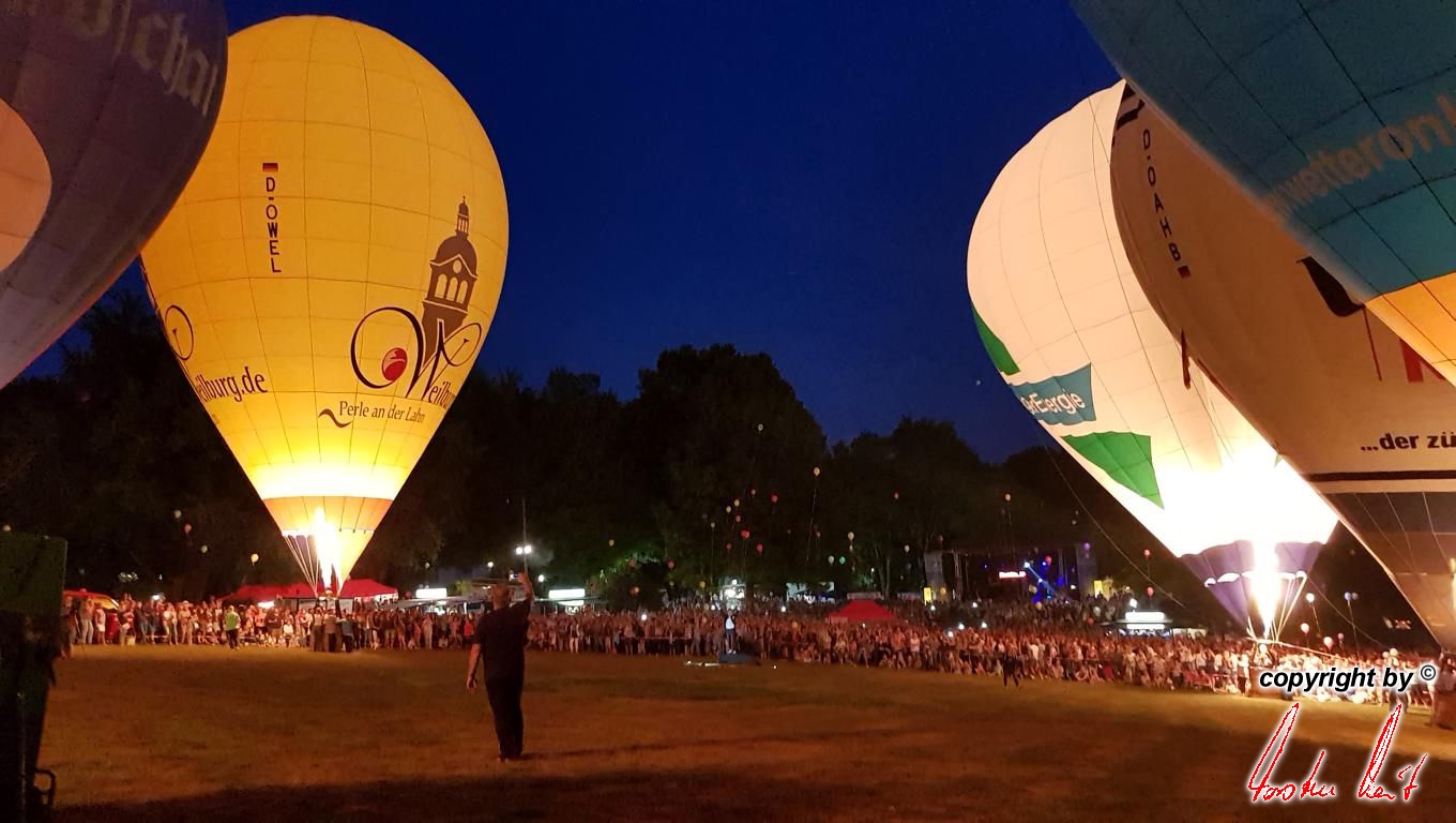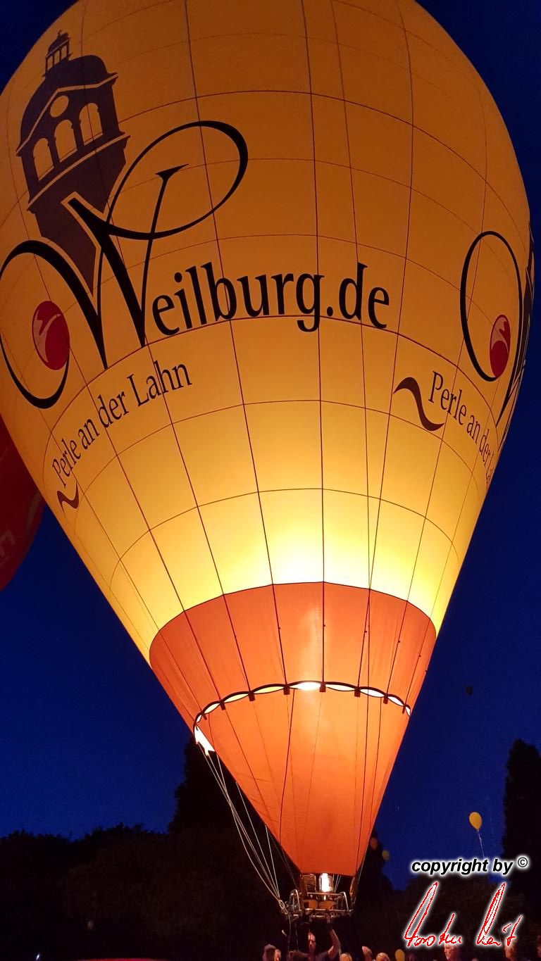 Anlässlich des 29. Residenzmarktes in Weilburg, der vergangenen Samstag und Sonntag stattfand, fand am Samstagabend eine ausgesprochen schöne und besondere Fahrt mit unserem Bürgermeister und seiner Lebensgefährtin statt. Um zu gewährleisten, dass er den besten Blick auf "seine" Perle und seine Stadt hat, fuhr er im Ballon der AggerEnergie. Die Fahrt ging über die Stadt, so dass alles perfekt gelang. |