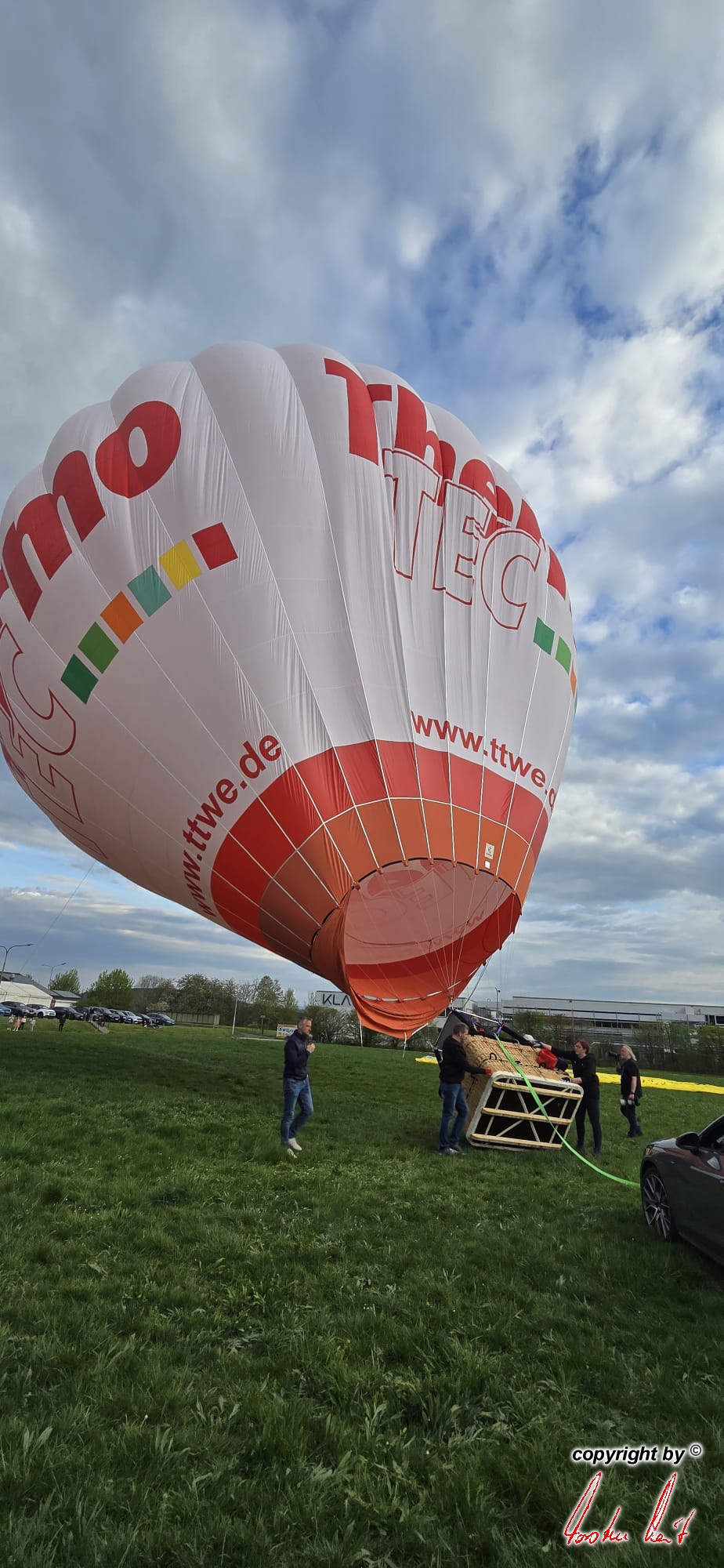 Unser Ballonfreund aus Weilburg, Oliver Pfeffer, konnte am Samstag, 18. April endlich seinen neuen Heißluftballon ThermoTec auf den Namen "Karl-Heinz" zu Ehren des Firmengründers Karl-Heinz Habich taufen. |