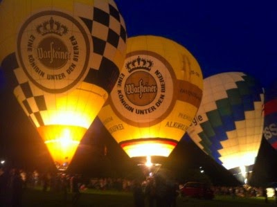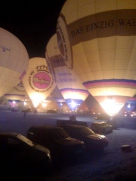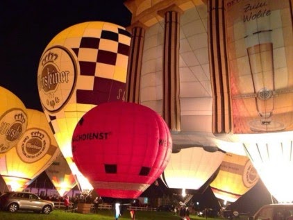 Nachdem die diesjährige WIM leider der Legionellenseuche in Warstein zum Opfer gefallen ist, hat am 16.11. ein Special Nightglow in Warstein stattgefunden. Es waren 28 Ballonteams anwesend, unter anderem auch wir mit unserem Warsteiner Ballon. Es hat Spaß gemacht, alte Freunde wiederzusehen. Es war saukalt aber trotzdem superschön. Warstein ist für uns Ballonfahrer immer eine Reise wert. |