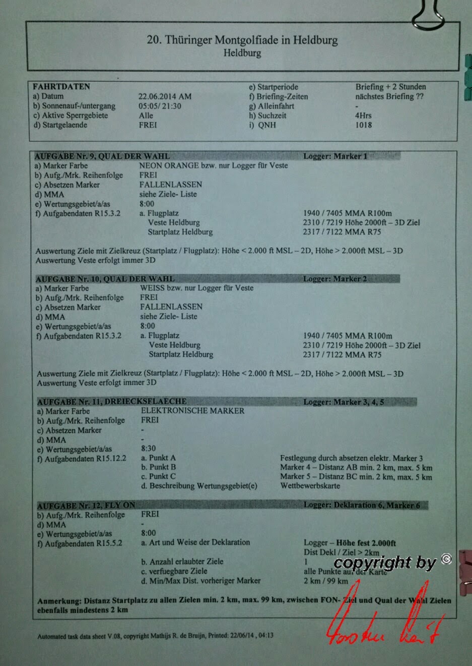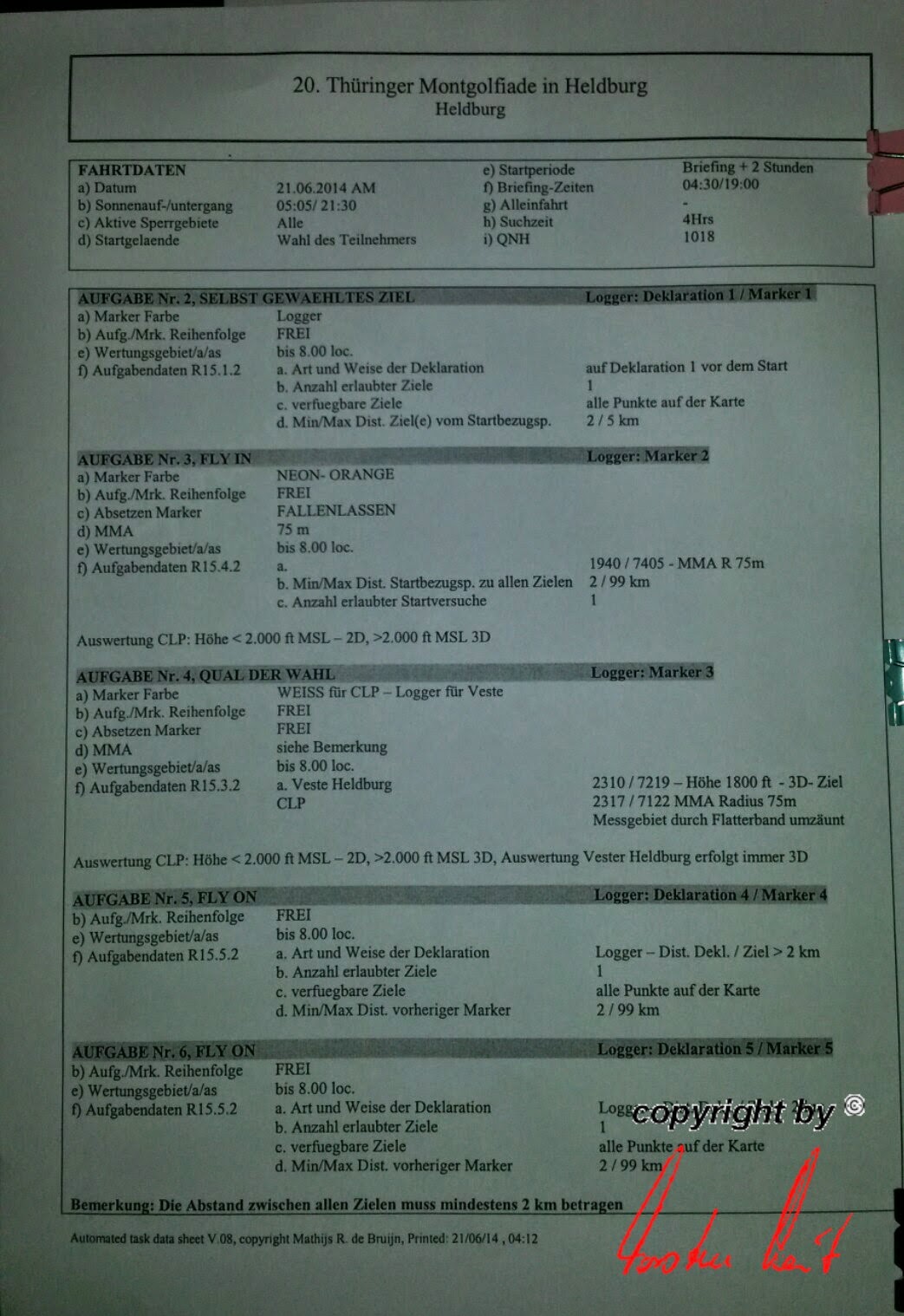 Samstag, 21. Juni 2014 / 2. Fahrt Briefing vorbei, für die Morgenfahrt hat sich die Wettbewerbsleiterin Silvia Meinl 5 Aufgaben ausgedacht: 1x PDG, 1x FIN, 1x HWZ und 2x FON. Also, auf geht's, versuchen wir, das Beste draus zu machen. |