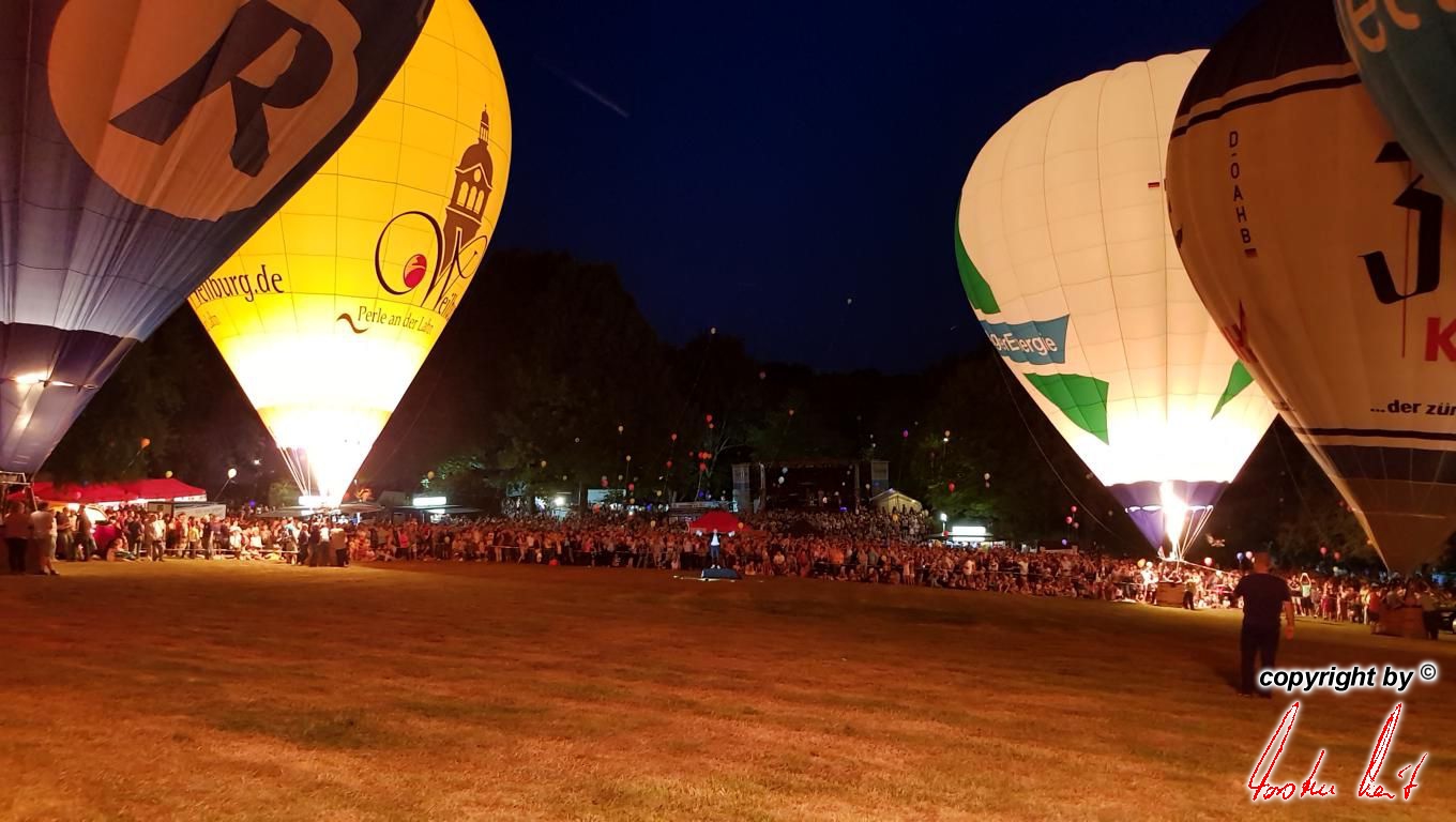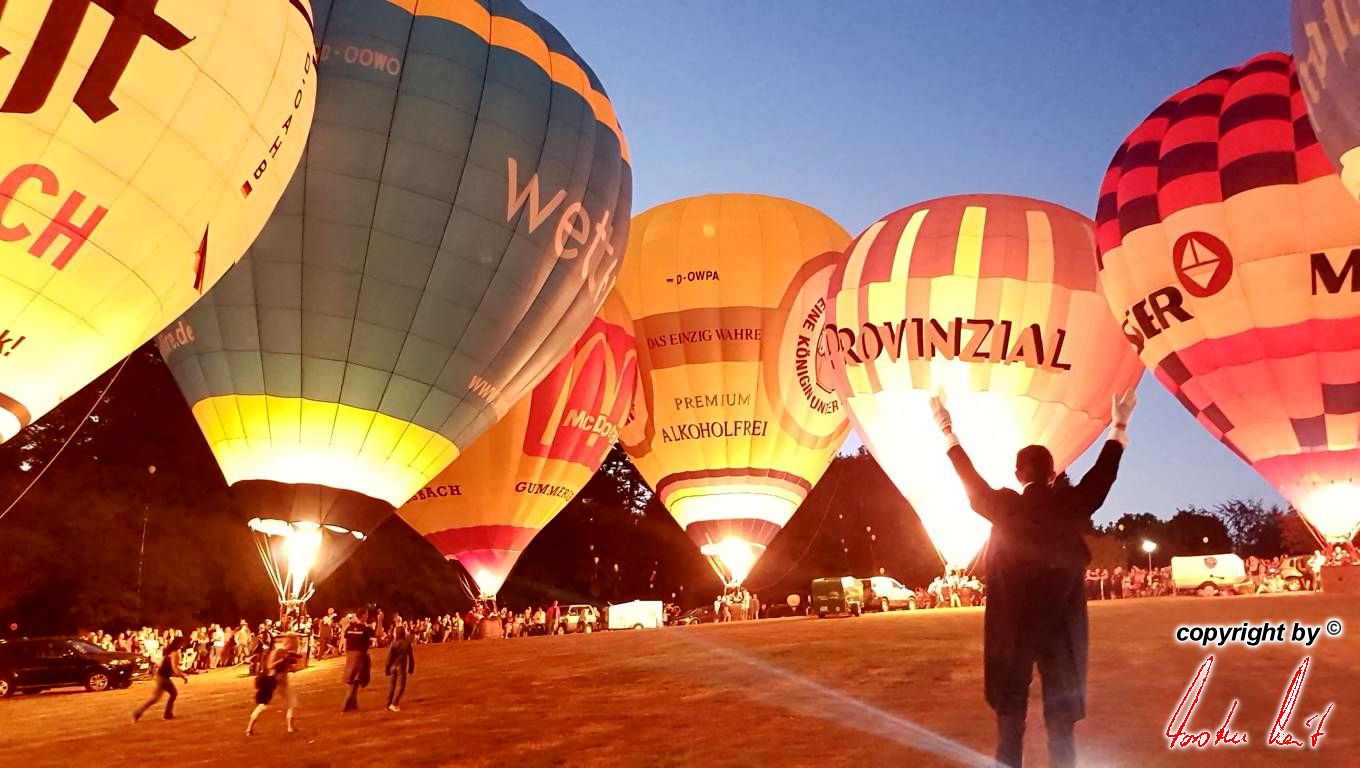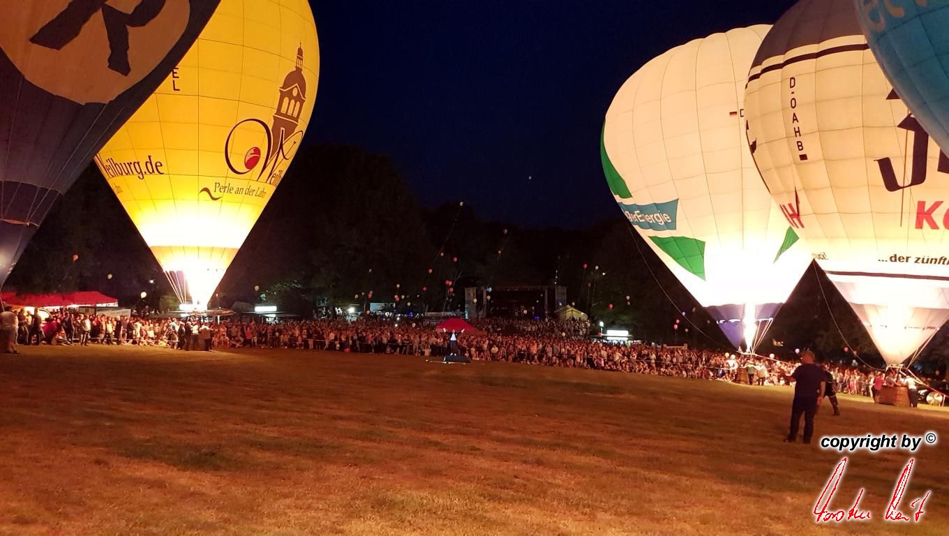 Anlässlich des 29. Residenzmarktes in Weilburg, der vergangenen Samstag und Sonntag stattfand, fand am Samstagabend eine ausgesprochen schöne und besondere Fahrt mit unserem Bürgermeister und seiner Lebensgefährtin statt. Um zu gewährleisten, dass er den besten Blick auf "seine" Perle und seine Stadt hat, fuhr er im Ballon der AggerEnergie. Die Fahrt ging über die Stadt, so dass alles perfekt gelang. |