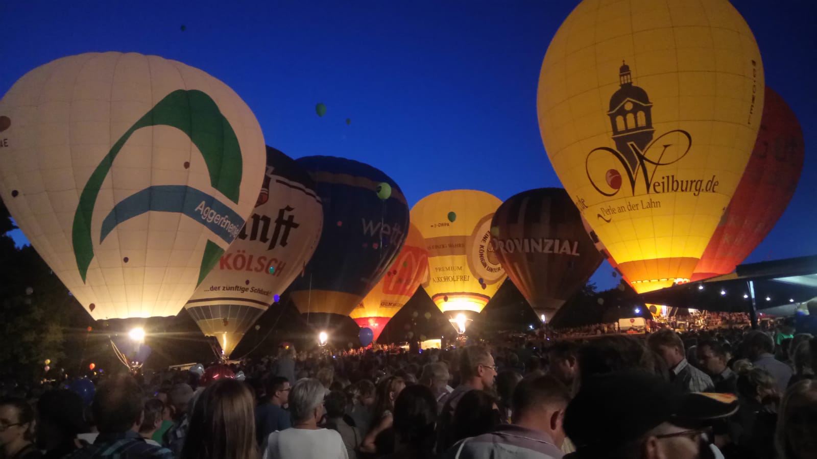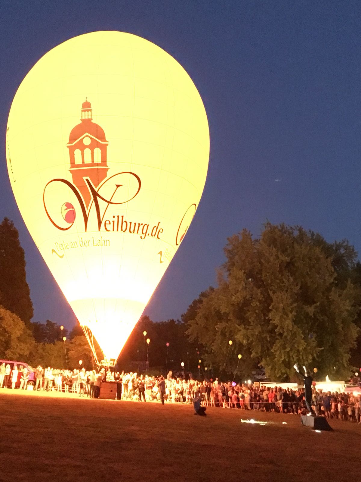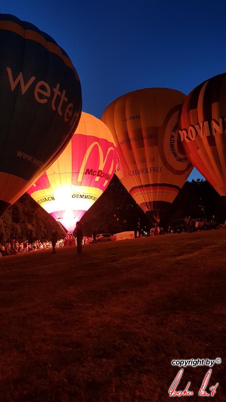 Anlässlich des 29. Residenzmarktes in Weilburg, der vergangenen Samstag und Sonntag stattfand, fand am Samstagabend eine ausgesprochen schöne und besondere Fahrt mit unserem Bürgermeister und seiner Lebensgefährtin statt. Um zu gewährleisten, dass er den besten Blick auf "seine" Perle und seine Stadt hat, fuhr er im Ballon der AggerEnergie. Die Fahrt ging über die Stadt, so dass alles perfekt gelang. |