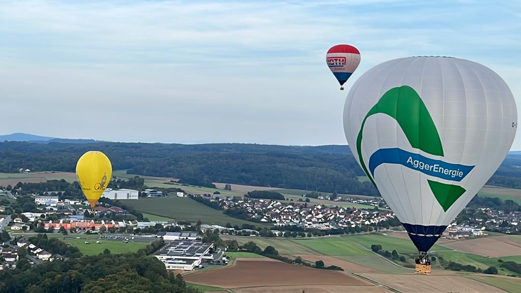 Sonntagmorgen brachen Stefan Pack und Marcus Strauf mit ihren Teams zu einer herrlichen Morgenfahrt von Hermesdorf nach Kleinfischbach auf. Durch unterschiedliche Windrichtungen in verschiedenen Höhen ließen sich die Ballone schön steuern. |